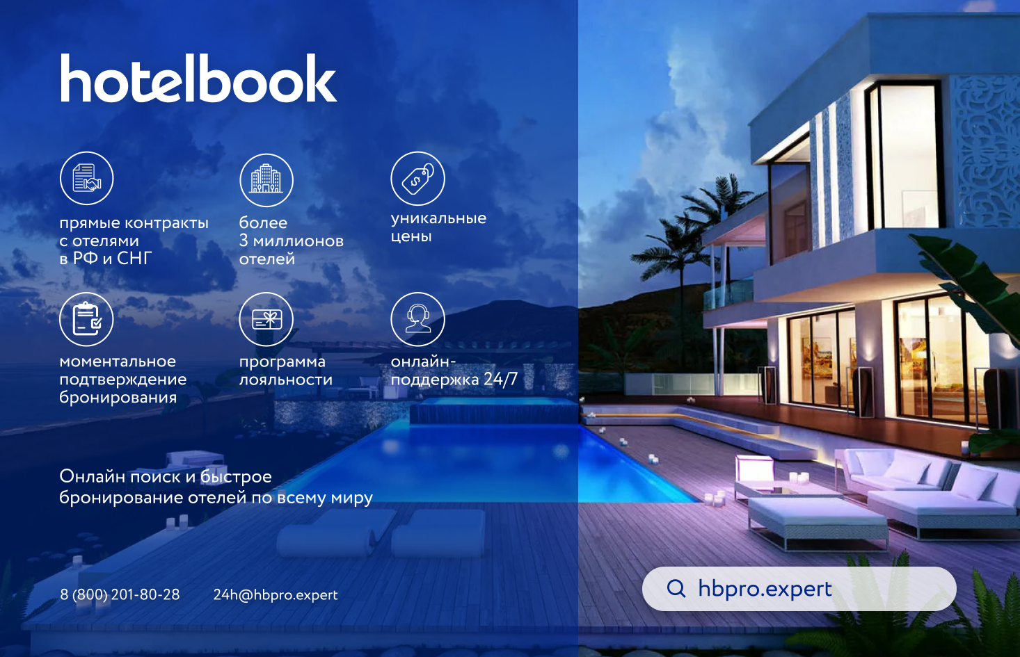B2B сервис онлайн-бронирования отелей и туристических услуг по всему миру.