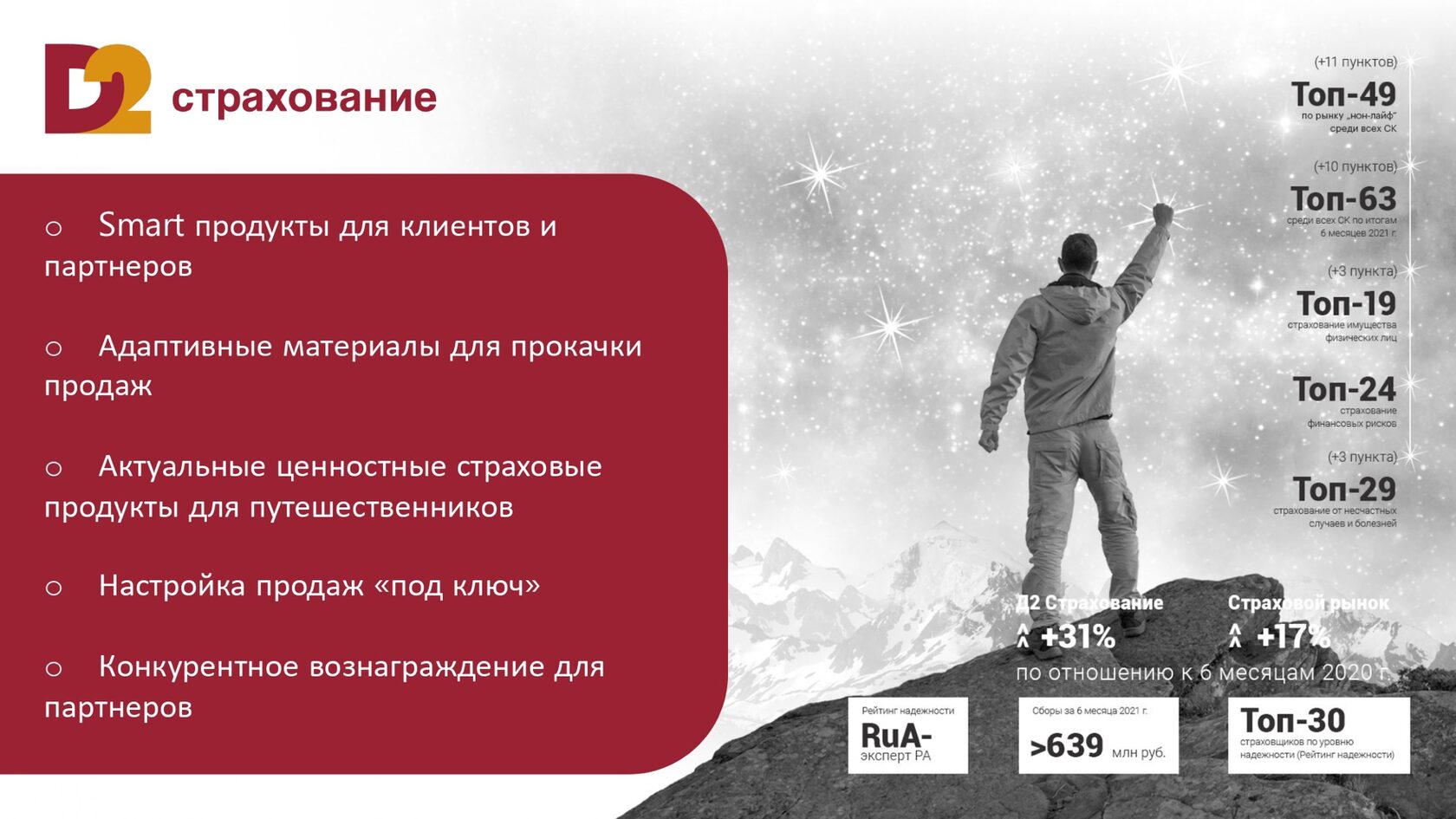 Компания, обладающая 30-летним опытом работы на российском финансовом рынке. Профильным направлением деятельности является страхование в В2В-сегменте, включая банкострахование и ретейловые сети.